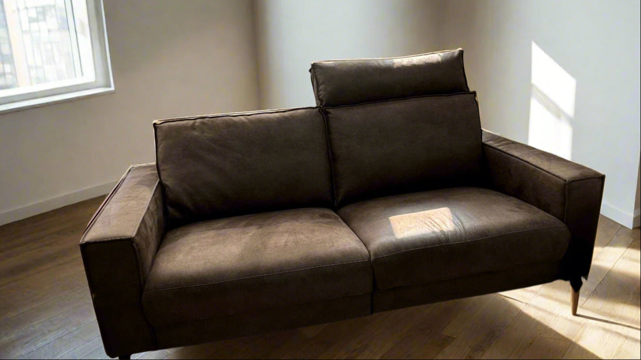 Двуместен диван с лежанка/разтягащ механизъм/, в скандинавски стил. Изчистени форми, дамаска-тип велурена, удобна лежанка, цветова гама в земни тонове /прекрасен сиво-кафяв цвят/.