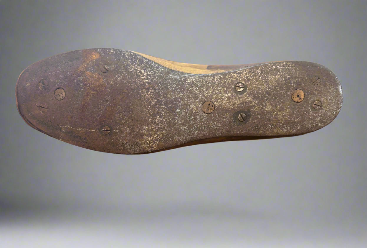 🔹 Подметката е от цял метален лист, който е хванат със старинни винтове – детайл, характерен за калъпи от периода между 1920 и 1950 година.