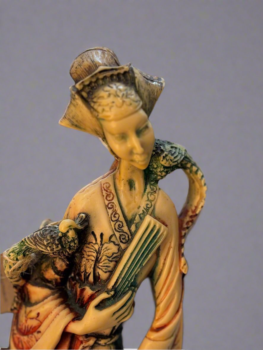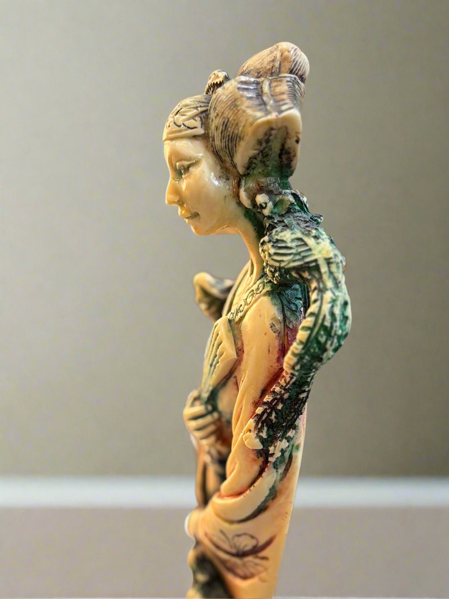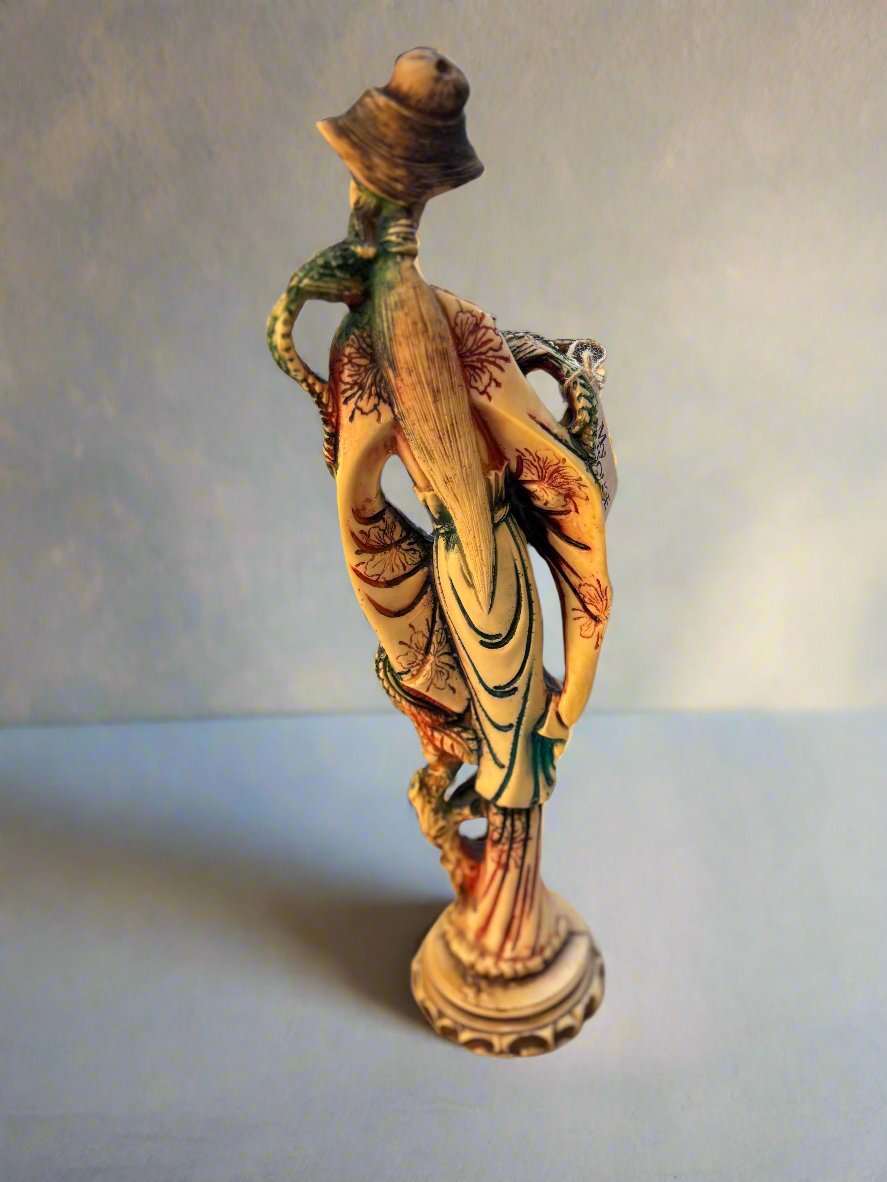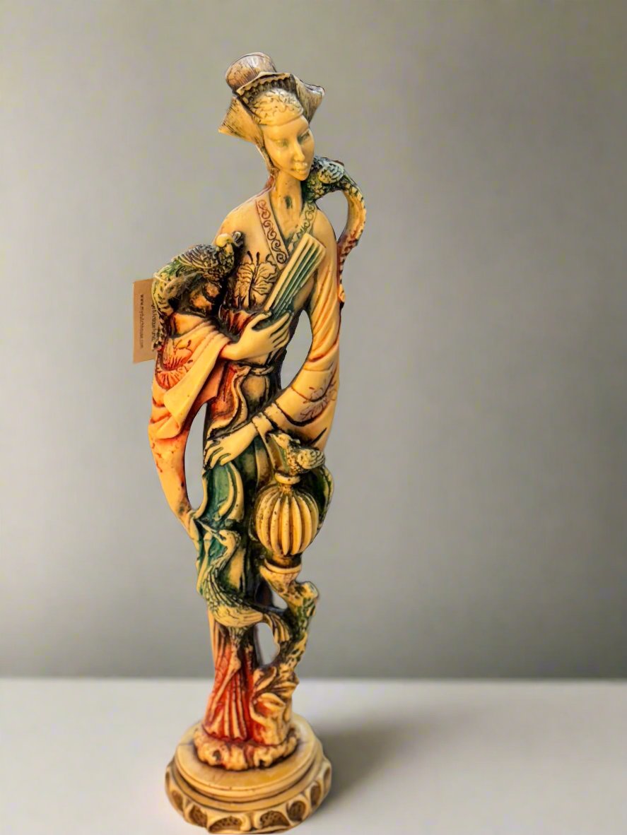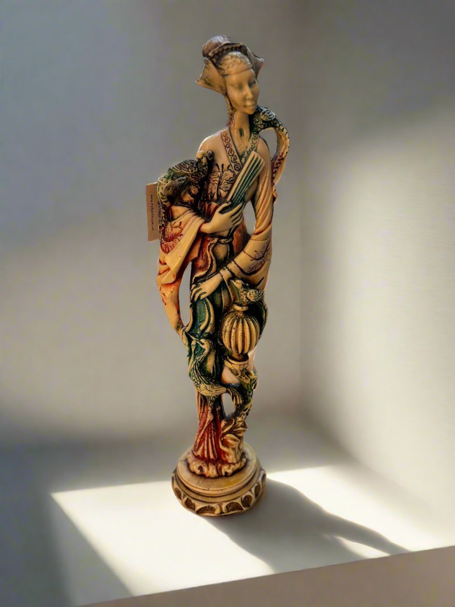 Потопете се в богатството на азиатското изкуство с нашата разкошна китайска статуя, ръчно издълбана с изключително майсторство, направена от алабастър, въплъщаваща естетиката и културната дълбочина на Ориента.
