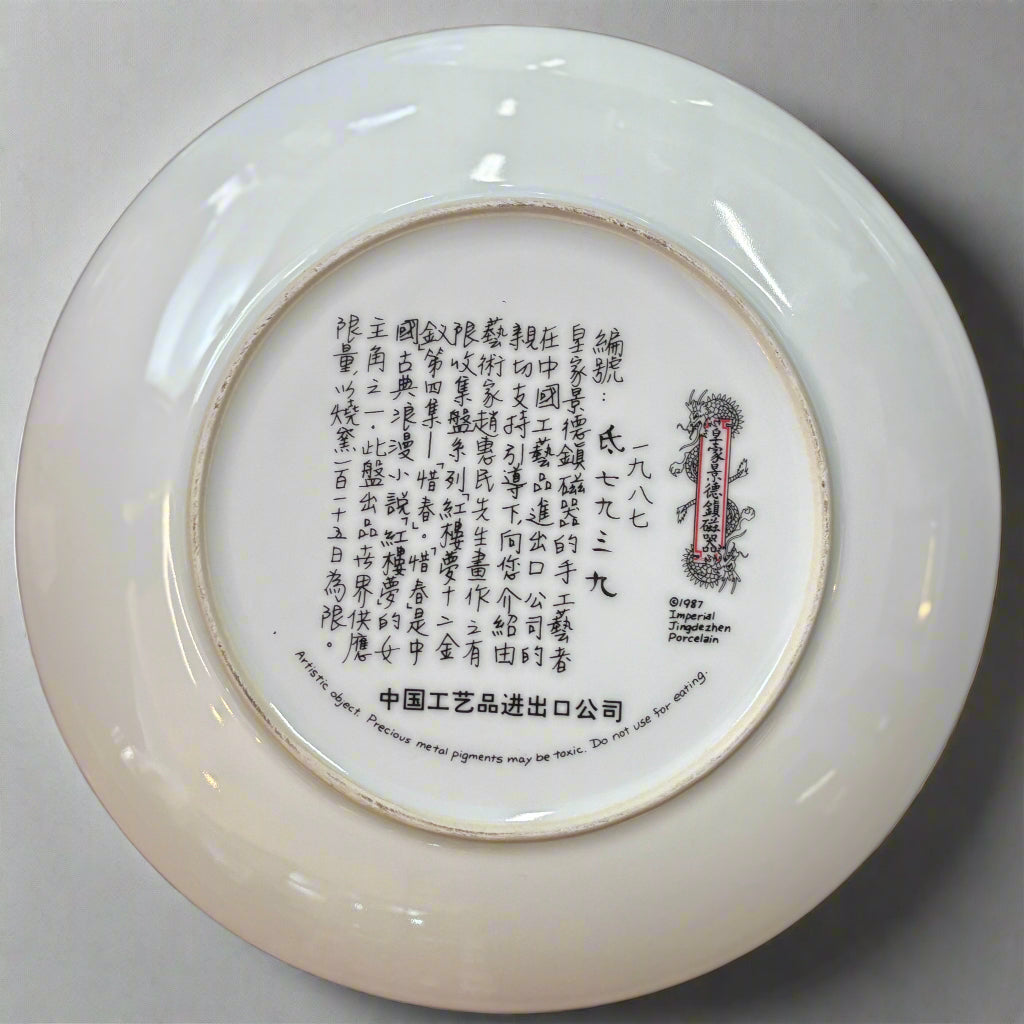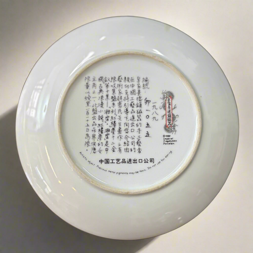 Тази порцеланова чиния е от 1986г., и е 2-ра от 12-те чинии, с водещ женски герой Jia Yuan Chun в The Dream of Red Chamber Story.