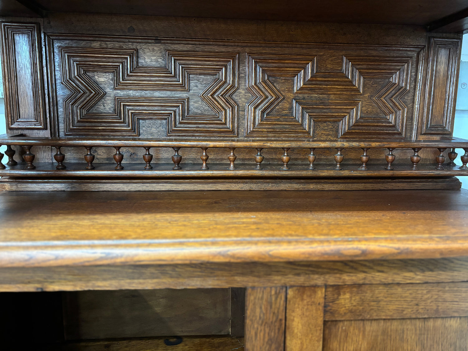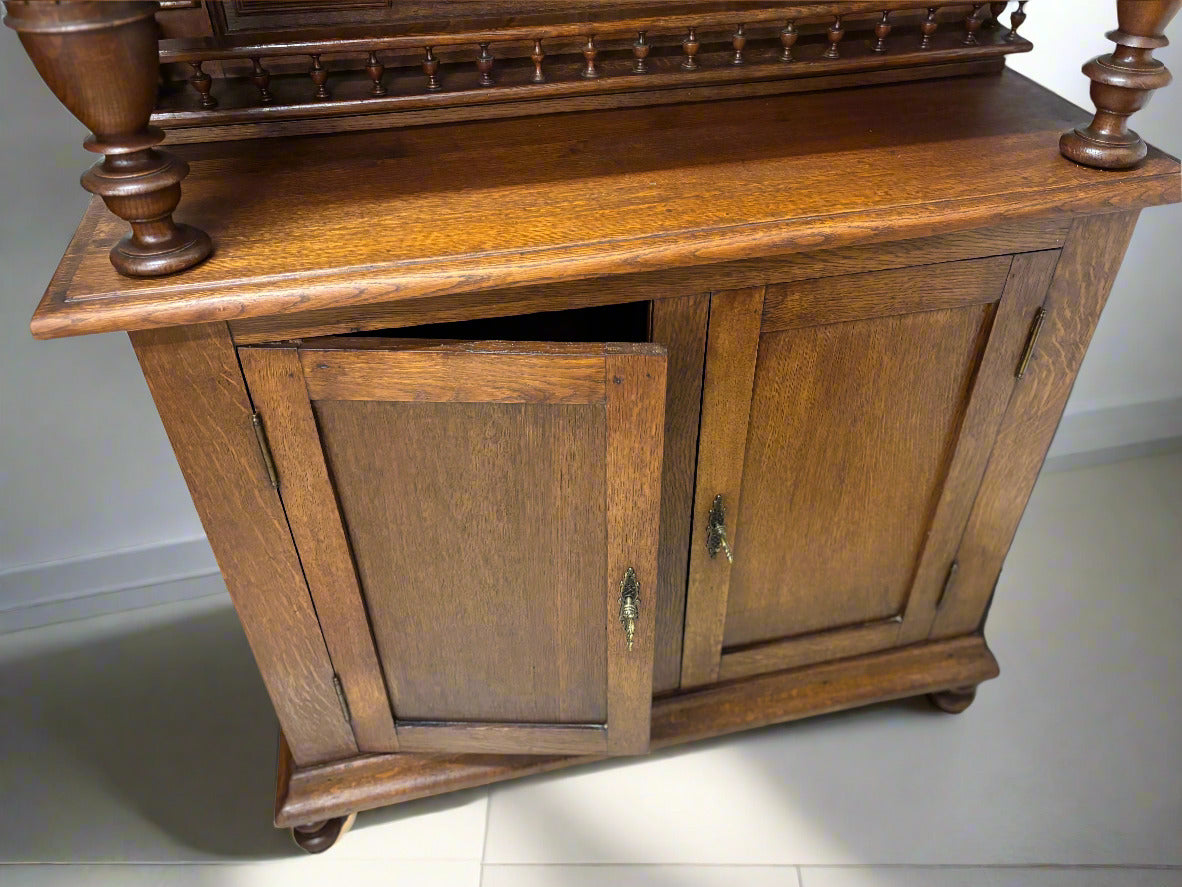 Резбован античен шкаф от масивен дъб с витраж в стил неоренесанс. Нидерландия.