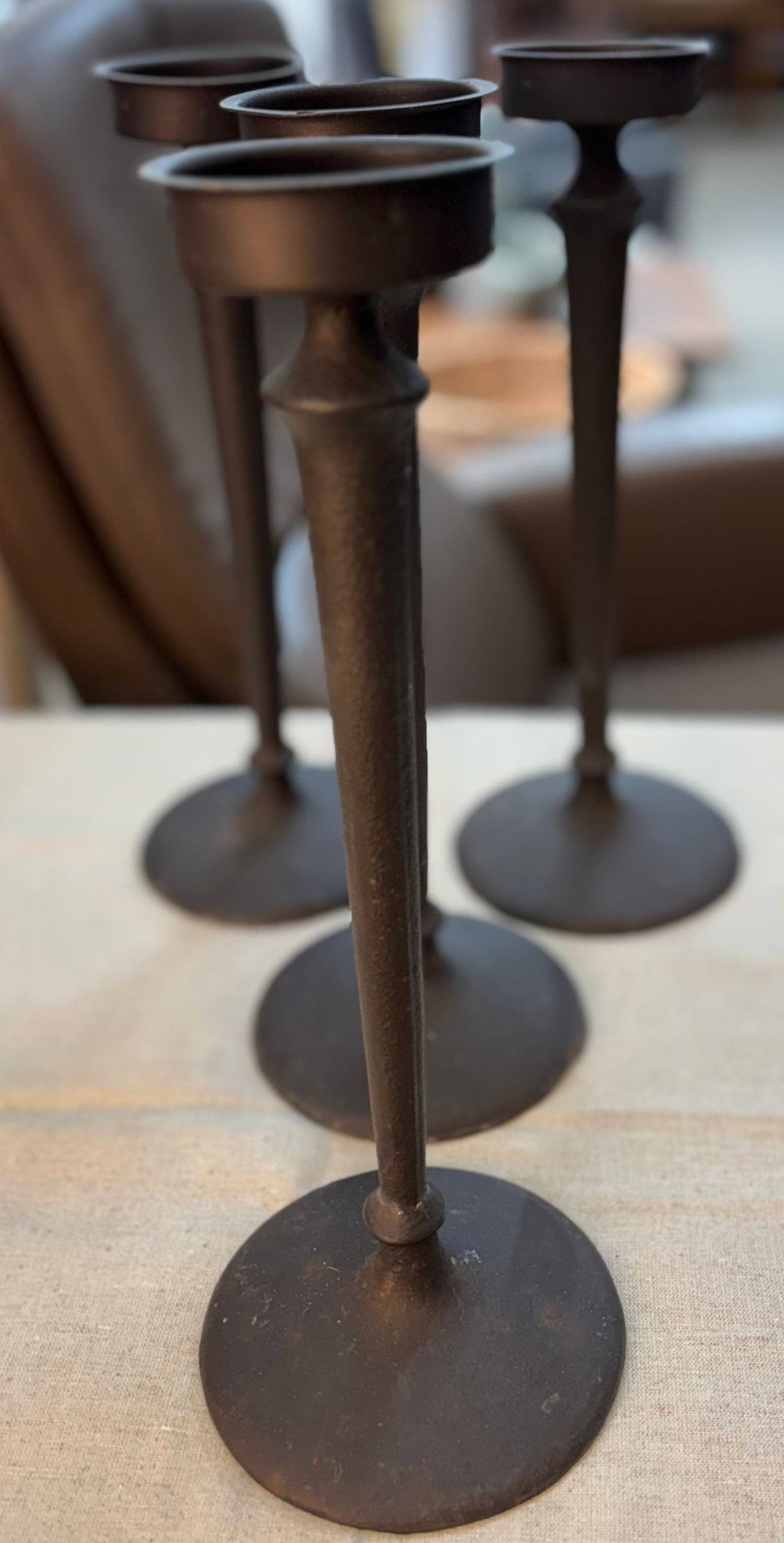 Този ръчно кован комплект свещници със сигурност ще добави фокус и визуален интерес към всяка точка на вашия дом. Създайте топъл приветлив централен елемент върху камината, масичката за кафе или конзолата и подобрете външния вид на вашия съществуващ декор.